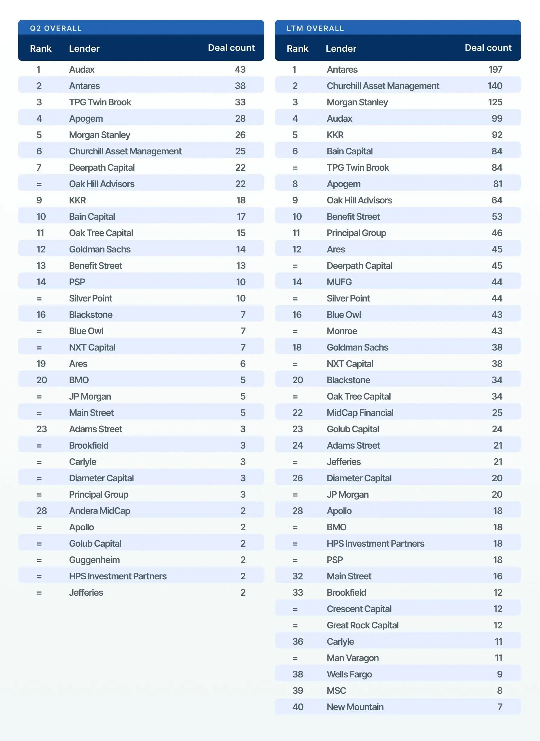 9Fin has just released the Q2 2025 Private Credit League Tables, and the results give us a clear view of which lenders are dominating deal flow: